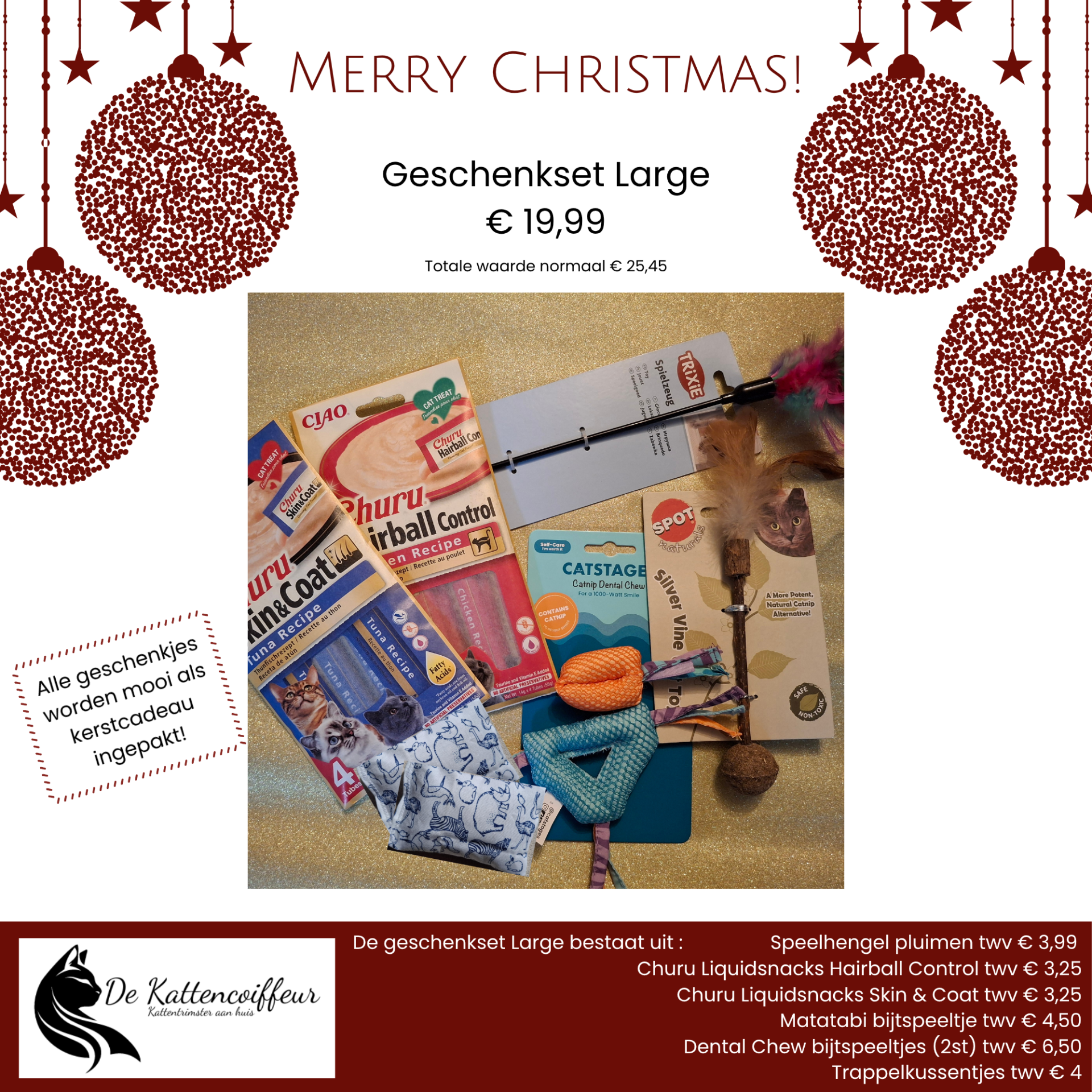 Deze kerstset wordt als echt geschenkje ingepakt in cadeaupapier !